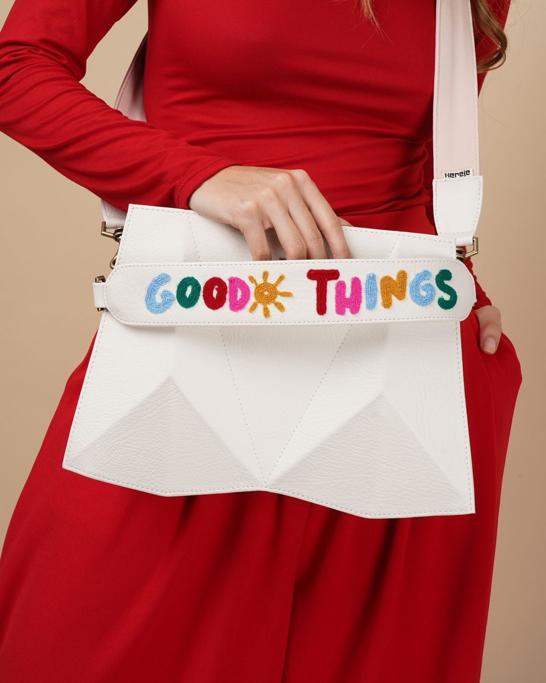 • Removable embroidered handle.